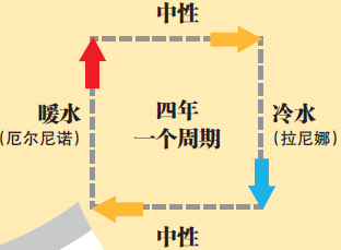 根据气候规律,“厄尔尼诺—拉尼娜”的自然循环平均是4 年一个周期,“拉尼娜”一般紧随“厄尔尼诺”现象出现。