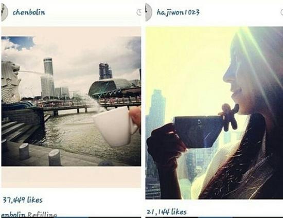 2.咖啡杯照:这是去年在新加坡开粉丝见面会时,由公司人员帮忙拍的照片,我们真的不知道陈柏霖也上传过类似的照片。