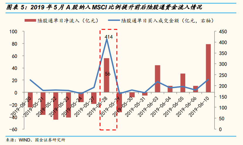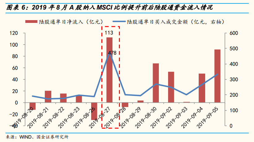 11月由于中盘股的纳入,本次带来的被动增量资金规模将为历次最高,预计为493亿人民币,大盘股和中盘股被动增量资金分别为281亿人民币、212亿人民币。从今年5月和8月,A股纳入MSCI比例提升经验来看,外资在MSCI时间窗口流入明显。