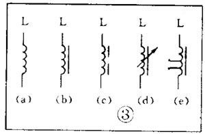 电感器与变压器的符号 电感线圈在电路图中的图形符号见图 3 。其中( a )是电感线圈的一般符号,( b )是带磁芯或铁芯的线圈,( c )是铁芯有间隙的线圈,( d )是带可调磁芯的可调电感,( e )是有多个抽头的电感线圈。电感线圈的文字符号是“ L ”。